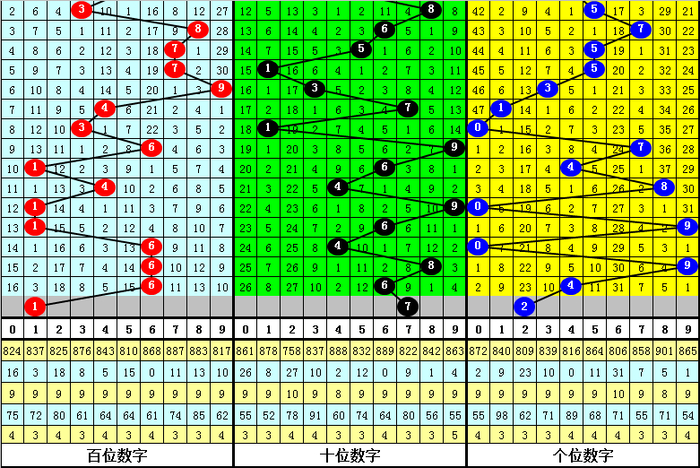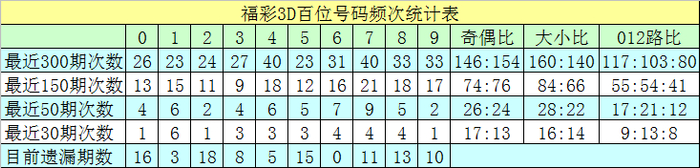 百位分析:最近50期推崇较热的号码有:7出现9次,6出现7次,1、4出现6次;推崇较冷的号码有:2、9出现2次,0、3出现4次。出号奇偶比为26:24,012路比为17:21:12。本期该位绝杀两码3、6,参考号码0、1、5,精选一码1。