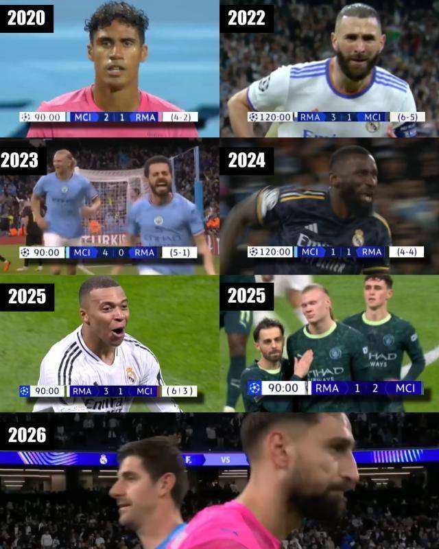 体坛周报全媒体报说念 欧冠16强抽签出炉,曼城和皇马再次分在悉数,这是两队贯串第5个赛季在欧冠淘汰赛再见,刷新了历史记载,从2020年1/8决赛运转到本赛季,两边交战13次,其中本赛季已在联赛阶段有过1次交锋,曼城客场2比1得胜。
